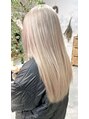 白っぽさのあるハイトーンベージュです!ホワイト系のカラーはブリーチの時点でいかにしっかり明るくできるかが重要になってきます。髪の状態に合わせて最適なブリーチで施術させて頂きますのでお気軽にご相談ください!