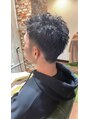 サイド2ブロックバックは自然に繋げてツイストパーマで動きを出したスタイルに。