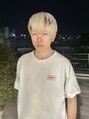 【気に入ったスタイルはブックマークをして頂くと便利です】顔まわりのカット、ミディアムヘア、ブリーチカラーが得意です!【表参道/青山】全体をホワイトブロンドにし、部分的にブラックを入れたデザインカラー。