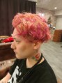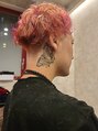 ブリーチをした後、根本はベージュに染め毛先はレッドをランダムに塗布!襟足は刈り上げて元々の癖を生かしてのカット!
