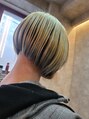襟足ブロックの前下がりボブ!オーバーのみブリーチ2回してインナーブラック!クールすぎる!格好良い!これはおしゃれ上級者の頭!ちなみにこの方はメンズです!