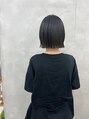 毛先をやや軽めにしたぱつっとボブは、黒髪の艶をいかしてツヤツヤ仕上げに。襟足ギリギリのラインで切って伸びて崩れが少ないようにしてます