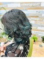 カット、マグネットカラー、塩基性カラー、ufbヘッドスパ。毛先とボリュームのメンテナンスカット。インディゴネイビーのベースに、毛先のみ塩基性ブルーを。以前のブリーチ履歴をいかしたグラデーションカラーに。