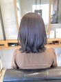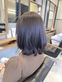 王道の切りっぱなしボブですね。ギリギリ結べる長さがあります。表面には少しレイヤーが入っているので、動きも出せる人気のスタイルですね。カラーは透け感あるアッシュベージュで染めました。切りっぱなしボブにアッシュの組み合わせが可愛いですね。