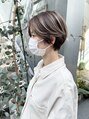 大人かわいい前下がりのショートはシャープに切ったライン、襟足をしめてスッキリ見せたりと、メリハリを効かせて絶妙なバランスに!ハイトーンカラーはシークレットハイライトで立体感、束感、質感をプラスしてくすみカラーのアッシュベージュを!
