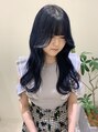 #天神美容室#ダブルカラー#ケアブリーチ#ネイビーブルー#ブルーブラック#顔まわりレイヤー#顔まわりカット#韓国ヘア#くびれヘア