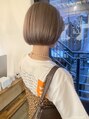 【気に入って頂いたスタイルはブックマークをしてご提示下さい】耳あたりから徐々に短くした前上がりボブ◎後ろも内巻きになりやすいように少し表面の方が短くなるようにカットしています!カラーは3回ブリーチしている明るさを活かしてミルクティベージュ♪