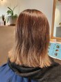 毛先のブリーチと馴染ませるレッドカラーです。明るさ的に一番色味が感じやすく、違和感のなくなる色味を提案させていただきました。少しだけパープルを入れることで、オレンジではなくレッドにしています。