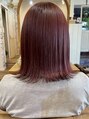 赤っぽく紫っぽくも見えるカシスピンクです!こちらはブリーチ履歴のある髪の毛に入れているので発色がパキッとしていますがブリーチなしでも暖色系は色味が出やすいのでピンク目立たせたい方おすすめです◎