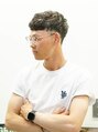 裾まわりは刈り上げ、サイドはツーブロックにトップのデザインは癖をいかしてハイライトでより立体感をプラスしてます。