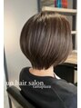 骨格補正立体ショート/まとまりよく、乾かせば自然とくびれるショートです。高発色イルミナカラー/寒色系のオリーブブラウンです。ハイライトの組み合わせもおススメです。【髪質改善オージュア認定サロン/インナーカラー/白髪隠しハイライトなど各種取扱】