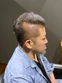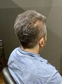 白髪のお悩みを解決するため、一度ブリーチしてからグレイッシュパープルブラックのカラーをオン。白髪染めに見えない白髪染めです。高めの刈り上げとサイドに流したトップで左右でまったく違う印象に、お洒落上級ビジネスマンのオールバックスタイルです。