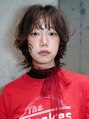 マッシュウルフベース。前髪長め、襟足は前から少し見えるくらいに設定したミニマッシュウルフ。スパイラルミックスパーマでしっかり動きをつけて色気のある雰囲気に