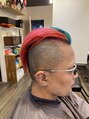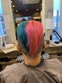 モヒカンカットからのピンクとターコイズブルーの2トーンです個性爆発髪型です