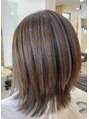 ミディアムボブ/レイヤー/アッシュグレージュ/ハイライト/前髪有
