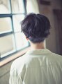 耳はしっかりと出して、えりあしは刈り上げずに耳からもみあげにかけて前上がりになるように短めにカット。前髪以外はしっかりめにパーマをかけて前髪は少しゆるめに。パーマをしっかりかけてあげると朝のスタイリングもとっても早く仕上がります♪