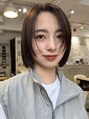 あごラインの長さのぷつっとしたボブにお顔まわりだけレイヤーを入れています。黒髪でも重さを感じないお顔まわりのレイヤーが人気です。原宿 表参道 青山 駅近