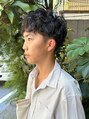 今が旬のツイストスパイラルパーマは少し大きめカールに束間を出しておしゃれにアップデート。サイドは刈り上げのツーブロックでスッキリとメリハリを。ナチュラルマッシュからのイメチェンにもオススメ。