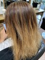 大人気の育てるブリーチカラーシリーズですブリーチ毛と既染毛のパックリ別れをハイライトを入れて直しています。そこからオンカラーでグラデーションカラーのような仕上がりになっています。