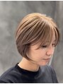 鮮やかなハイトーンカラーの中に、大人っぽさを入れたショートスタイル♪♪♪フロントとサイドバングの毛流れと束感が、更にオシャレを演出してくれます★★★[前下がりグラデーションボブ/ヌナボブ/王道ベージュ]