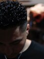 細いロッドできつめに巻きます!センターは後ろに巻き、サイドはパーパスで巻きます!スライスももちろん細く取り、均等に巻きます!豆まきパーマとも呼ばれます!短い長さでもできるので、夏おすすめです#メンズヘア #メンズショート #福島区#メンズパーマ
