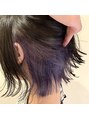 2回ブリーチをしたのちにインナーカラーをラベンダーパープルにしました。カットは切りっぱなしボブで自然な雰囲気にしました。