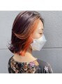 周りと差を付けたい方にオススメなスタイル!顔まわりをブリーチで抜きカラーミューズでオレンジに染め、ベースは暗めのカシスカラーで♪前髪を流しにすることで大人っぽさを損なわないスタイルに#博多#髪質改善#美髪#アディクシーカラー#イルミナカラー