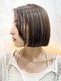 まとまりやすく簡単なセットを自宅で再現。オイルをつけてとかすだけでok!インナーカラーでお仕事的になかなか明るくできない方にもおすすめ。顔周りに明るいカラーが入るだけで自然と軽さとお肌の色も綺麗に見えます。カットは襟足ギリギリのミニボブ です。