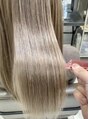 少しクセが気になるけどブリーチが必要な透明感カラーがしたい人に向けた提案。他店とは違うストレートヘア+透明感カラーが手に入り、縮毛矯正ではなく、ツヤツヤで自然なストレートヘアになれる独自理論のリピート率99%のケラチントリートメント。担当 高沼