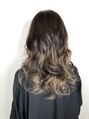 バレイヤージュとグラデーションを組み合わせたヘアスタイル。ケアブリーチ後にアッシュ系の色味を入れました。ブリーチ必須のメニューになります。