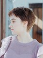 ニュアンスの柔らかさが効いたベリーショート。コンパクトでかたちが立体的に作られているのがポイント。前髪もおでこを出した軽さで爽やかで大人っぽさを。カラーは透明感をたっぷり入れたキャメルカラーでカジュアルで女っぽいショートヘアです。