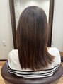 根元はブラウン味の濃い白髪染めでしっかり染め、毛先はアッシュベージュで全体の黄色味・ぎらつきを抑えながら褪色した白髪部分にも色味を入れていきました。