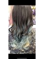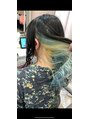 インナーカラーの中に更にインナーカラーを入れました。表面は地毛の黒、2段目に水色、襟足に黄色という組み合わせです。お菓子みたいで、かわいい派手髪になりました。