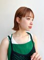 顎くらいの大人ショート、ミニボブ。オレンジベージュカラーで、透明感と柔らかい印象になれます。オイルバームを髪全体に馴染ませるだけのツヤ髪になれる簡単スタイリング。ハイライトを入れて透明感をプラスすることもできます。