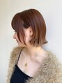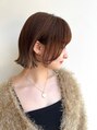 顎くらいの大人ショート、ミニボブ。ベージュカラーで、透明感と柔らかい印象になれます。オイルバームを髪全体に馴染ませるだけのツヤ髪になれる簡単スタイリング。ハイライトを入れて透明感をプラスすることもできます。