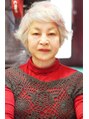 トップふんわりパーマ、毛先は外ハネになるようにこちらもパーマ。ヘアマニキュアでアクセントカラー