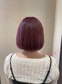 ブリーチオンカラーで作るベリーピンクコンパクトなミニボブにとっても似合うヘアカラー。ややクセのある髪質なので、軽くストレートアイロンでボリュームを抑えています。スタイリングはロアオイルで少しウエットな質感で!