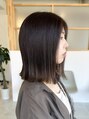 ブリーチなしオリーブグレージュ切りっぱなしボブ