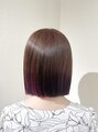 ブリーチ有りのテールカラー♪全体的にピンクをミックスして統一感を♪肩ギリギリに切りっぱなしボブでもかわいい♪