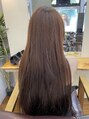超ロングでカラーリングによるダメージがあるので、サロンソリューションを施してツヤのあるサラサラロングに仕上げました。カラーはピンク系の色で仕上げてあります。