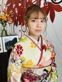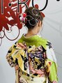 ヘアセットと振袖着付けでご来店下さいました。帯結びは華やかに!!襟の合わせも美しく!シワも無いようにキレイな着付けを心がけています。ヘアセットは永塚が担当しました。最近は水引きが人気です^-^