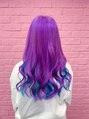 全体にブルーのインナーカラーで、表面は赤紫で染めました!