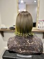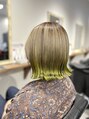 ブリーチの後に毛先はライムイエロー、根本からはシルバーを入れてあります。ボブによく合う裾カラーです。