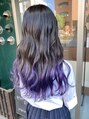地毛の黒髪とも相性ピッタリの【ブルーラベンダー】のグラデーションカラーです♪長さやスタイルに合わせ、グラデーションの高さをこだわってブリーチデザインしています!インナーカラー/イヤリングカラー/水素トリートメント/トリートメント/インナーカラー