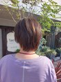 ショートレイヤースタイルです。白髪も気になるということでしたので、暗めにはせずに明るくなるように白髪ボカシもしています。伸びてきても馴染みやすいようなお色になっています。カットはレイヤーを入れて耳にかけてももたつかないようにしています。