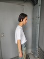 タイトに撫で付けてつつスタイリング剤で艶感を出してモードな雰囲気を出したミニボブスタイル!カジュアルなスタイルも少しハイに見えるバランスです!おすすめです!