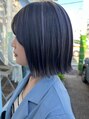ブルーアッシュ ハイライト 外ハネボブ シースルーバング