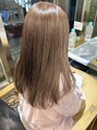 " milktea beige color " 1~2 bleach. 透明感たっぷりの柔らかいbeige.に。 クリーミーなベージュでまろやかなカラーにしました! 明るすぎず、暗すぎず調度いいバランスに◎ ハイトーン、ブリーチもお任せください!