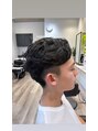 サイドにツーブロックを入れてスッキリと。トップはゆるめパーマで動きを出しました。