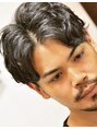 重めにカットすることで男らしさを演出したセンター分けスタイルです。周りはツーブロックにしてありますが、あまり差がくっきりしないように自然な仕上がりに。